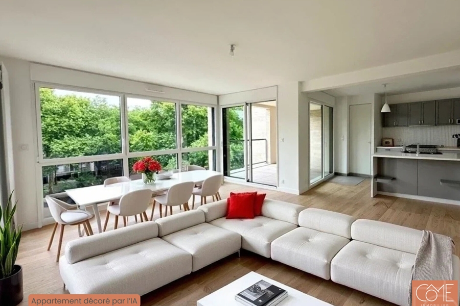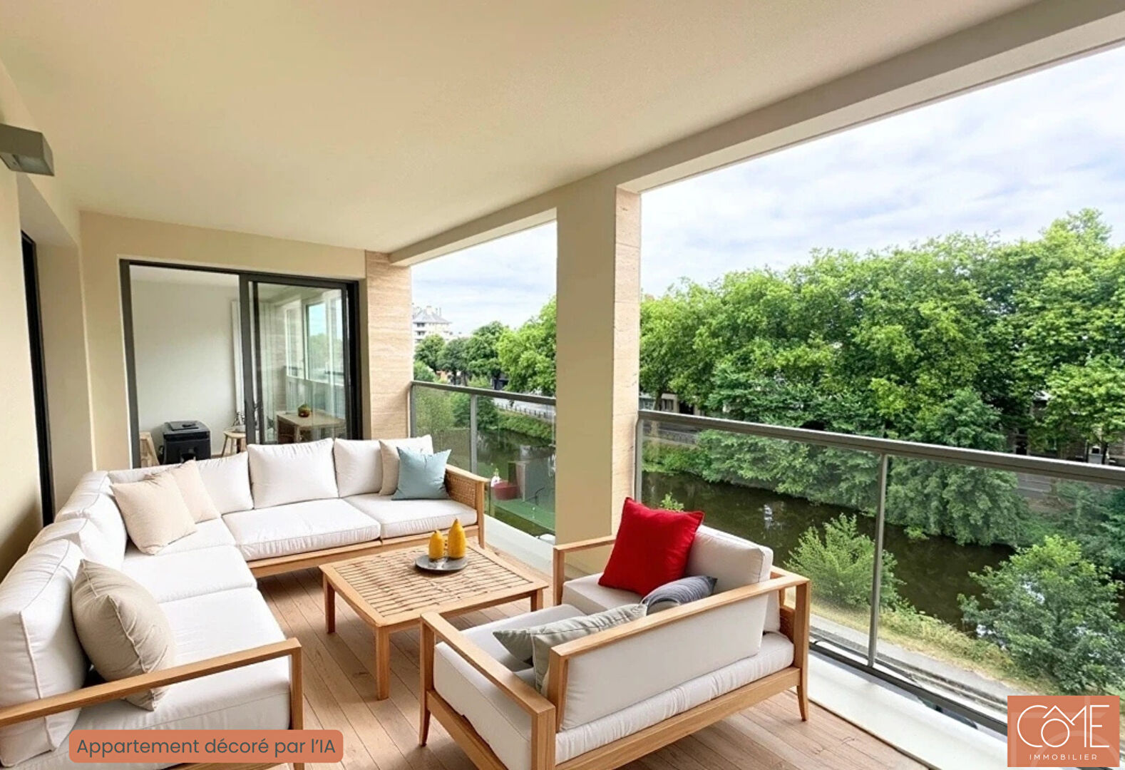 GRAND TYPE 3 NEUF de STANDING - 12m² de TERRASSE - BOX FERME - VUE CANAL DE L'ILLE - ANATOLE FRANCE - 35 000 RENNES CÔME IMMOBILIER vous propose ce superbe appartement de type 3, d'une surface de 79,33 m², situé dans une résidence neuve haut de gamme au coeur de Rennes, le long du canal de l'Ille. Idéalement placé, à seulement quelques minutes à pied du métro Anatole France, de la place des Lices et de la place de Bretagne. Dès l'entrée, vous serez séduit par un hall sécurisé au design soigné, pensé par un architecte. Un ascenseur vous mène au 4ème étage, où se situe l'appartement. L'intérieur s'ouvre sur une entrée avec grand placard miroir, menant à une pièce de vie lumineuse de près de 33m², orientée sud-est, sans vis-à-vis, offrant une vue imprenable sur le canal et la verdure qui le borde. Une terrasse couverte de 12,47 m², intime, prolonge agréablement cet espace. Espace nuit confortable et bien agencé : - Suite parentale de 11,68 m² exposée ouest, au calme sur l'arrière bénéficiant d'un dressing de 4,95 m² et d'une belle salle d'eau avec WC, - Deuxième chambre de 11,68 m² avec placard, également orientée ouest - Salle d'eau indépendante - WC séparés Un parking couvert et sécurisé complète ce bien. Appartement neuf - Frais de notaire réduits (environ 2% du prix de vente) Les atouts de ce bien : - Résidence neuve de standing - Emplacement privilégié : à 4 min du métro, moins de 10 min de la place des Lices, commerces, services et prairies Saint-Martin - Vue directe sur le canal de l'Ille - Frais de notaire réduits - Disponibilité immédiate Consultez une partie de nos offres sur notre site come - immobilier . fr Tous nos biens ne sont pas en ligne, n'hésitez pas à nous contacter directement Les informations sur les risques auxquels ce bien est exposé sont disponibles sur le site Géorisques : www.georisques.gouv.fr Réf. EM-2494