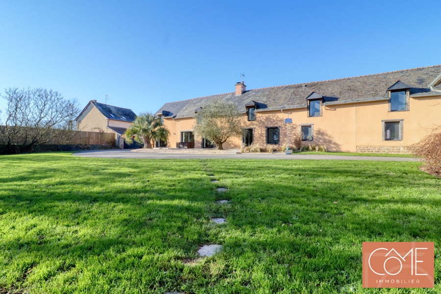 A VENDRE - 35760 SAINT GREGOIRE - LONGÈRE RÉNOVÉE - 206 m² Hab. ET 233.85 m² au sol- TERRAIN DE 3130 m² - - PRESTATIONS DE QUALITÉ - STUDIO INDEPENDANT ET DEPENDANCE. Découvrez cette magnifique propriété d'environ 206 m² habitables (233 m² au sol), nichée dans un environnement bucolique entre Saint-Grégoire et Betton. Véritable havre de paix, cette maison séduira les amoureux de la nature en quête de sérénité, tout en restant à proximité des commodités. Dès l'entrée, vous serez conquis par une vaste pièce de vie baignée de lumière, offrant de beaux volumes et une atmosphère conviviale. La cuisine ouverte, aménagée et entièrement équipée, s'intègre parfaitement au séjour et s'ouvre sur une agréable terrasse. Le rez-de-chaussée accueille également une véritable suite parentale, ainsi qu'un WC séparé. A l'étage, un dégagement dessert trois chambres spacieuses, dont une exceptionnelle de 33 m², facilement divisible selon vos besoins (chambre supplémentaire, bureau, salle de jeux?). Une salle de bains et un WC indépendant complètent ce niveau. Un garage avec buanderie attenante vient renforcer le côté pratique de la maison. En complément, un studio indépendant de 27 m², avec entrée indépendante, comprend une pièce de vie avec cuisine aménagée et équipée, une grande chambre, ainsi qu'une salle d'eau avec WC. Idéal pour un projet locatif, un espace professionnel ou pour accueillir famille et amis. Les extérieurs offrent de nombreuses possibilités : -Une dépendance actuellement utilisée comme garage, parfaite pour vos projets créatifs ou de bricolage, -Un hangar, idéal pour le stockage de matériel ou la mise en location pour caravanes ou autre, -Un terrain entièrement clôturé avec plan d'eau, facile d'entretien, propice à la détente. Les atouts de cette propriété : - beaux volumes - maison fonctionnelle et familiale - rénovation de qualité - environnement calme et verdoyant - fort potentiel grâce aux dépendances et au studio Pour plus d'informations ou organiser une visite, contactez Lucie PIEROTTI au 06 73 55 67 71. Tous nos biens ne sont pas en ligne, n'hésitez pas à nous contacter directement Réf. LP-2493 Les informations sur les risques potentiels liés à ce bien sont disponibles sur le site Géorisques : www.georisques.gouv.fr (4.14 % honoraires TTC à la charge de l'acquéreur.)