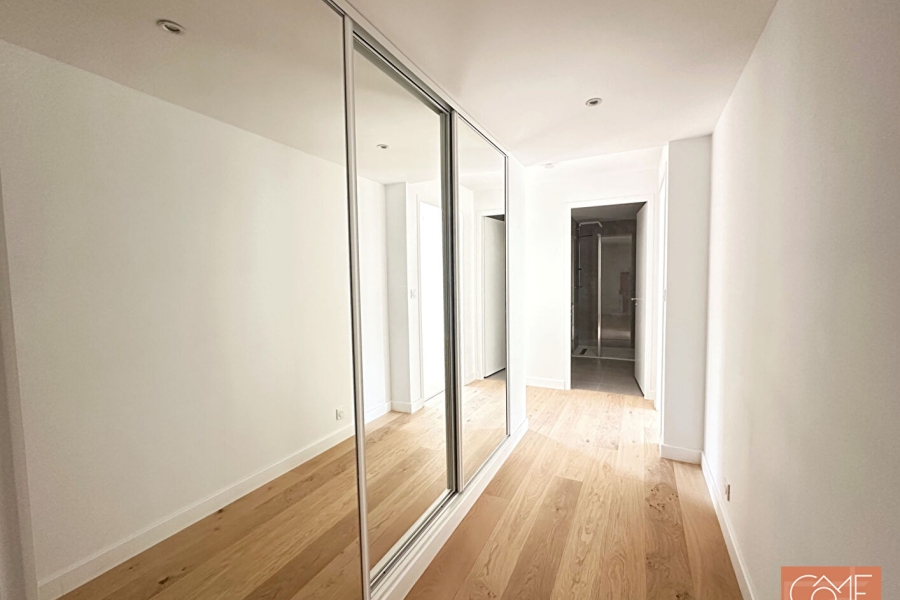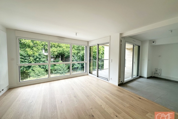 GRAND TYPE 3 NEUF de STANDING - 12m² de TERRASSE - VUE CANAL DE L'ILLE - ANATOLE FRANCE - 35 000 RENNES CÔME IMMOBILIER vous propose ce superbe appartement de type 3, d'une surface de 78,42 m², situé dans une résidence haut de gamme au coeur de Rennes, le long du canal de l'Ille. Idéalement placé, à seulement quelques minutes à pied du métro Anatole France, de la place des Lices et de la place de Bretagne. Dès l'entrée, vous serez séduit par un hall sécurisé au design soigné, pensé par un architecte. Un ascenseur vous mène au 2e étage, où se situe l'appartement. L'intérieur s'ouvre sur une entrée avec grand placard miroir, menant à une pièce de vie lumineuse de près de 30 m², orientée sud-est, sans vis-à-vis, offrant une vue imprenable sur le canal et la verdure qui le borde. Une terrasse couverte de 12,47 m², intime, prolonge agréablement cet espace. Espace nuit confortable et bien agencé : - Suite parentale de 11,68 m² exposée ouest, au calme sur l'arrière bénéficiant d'un dressing de 4,89 m² et d'une belle salle d'eau avec WC, - Deuxième chambre de 11,11 m² avec placard, également orientée ouest - Salle d'eau indépendante - WC séparés Un parking sécurisé en rez-de-chaussée complète ce bien rare. Appartement neuf - Frais de notaire réduits (environ 2% du prix de vente) Les atouts de ce bien : - Résidence neuve de standing - Emplacement privilégié : à 4 min du métro, moins de 10 min de la place des Lices, commerces, services et prairies Saint-Martin - Vue directe sur le canal de l'Ille - Frais de notaire réduits - Disponibilité sous 2 mois Consultez une partie de nos offres sur notre site come - immobilier . fr Tous nos biens ne sont pas en ligne, n'hésitez pas à nous contacter directement Les informations sur les risques auxquels ce bien est exposé sont disponibles sur le site Géorisques : www.georisques.gouv.fr Réf. EM-2311