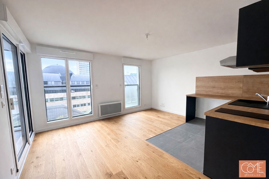 TYPE 2 NEUF - LOGGIA - CALME - RESIDENCE STANDING - CENTRE - GARE 35 000 RENNES NOUVEAUTE A LA VENTE ! CÔME Immobilier vous présente ce très beau Type 2 situé au 2ème étage sur 4 d'une résidence neuve, de standing, avec ascenseur. Cette résidence de seulement 14 logements profite d'un emplacement de qualité entre la gare et l'Esplanade Charles de Gaulle, dans une rue calme à sens unique. Vous êtes à à 3minutes à pied de la Gare que ce soit pour le train ou les lignes de métro A et B, à 5min de l'esplanade Charles de Gaulle et à moins de 10 minutes des halles centrales. L'appartement se compose de : - Une entrée avec placard - Un séjour avec cuisine aménagée et équipée doublement exposé Ouest et Nord - Une chambre de près de 13m² - Une salle d'eau moderne avec WC - Une loggia accessible du séjour et de la chambre bénéficiant, au calme, d'une vue sur le centre-ville rennais Un grand local vélos sécurisés est accessible au rez-de-chaussée de la résidence. D'autres appartements également disponibles au sein de cette résidence, du Type 1 au Type 4 ainsi qu'une maison de ville. N'hésitez pas à me contacter pour plus d'informations sur ce bien ou les autres appartements. Consultez une partie de nos offres sur notre site come - immobilier . fr Tous nos biens ne sont pas en ligne, n'hésitez pas à nous contacter directement Les informations sur les risques auxquels ce bien est exposé sont disponibles sur le site Géorisques : www.georisques.gouv.fr Réf- EM-2643