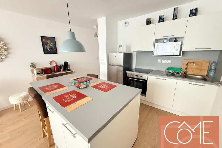 A VENDRE APPARTEMENT T3 - 66M² - BALCON - PARKING EN SOUS-SOL - QUARTIER PARAME - 35400 SAINT MALO Le Cabinet CÔME Immobilier vous propose dans une résidence de 2024, cet appartement de type 3 comprenant : Une entrée desservant un dégagement, une belle pièce de vie et sa cuisine aménagée et équipée, sa baie vitrée donnant sur un large balcon avec vue sur le parc de la résidence, deux chambres, dont une avec placard aménagé, une salle d'eau avec douche à l'italienne, un WC indépendant. Cet appartement bénéficie d'une place de parking en sous-sol avec branchement...pour recharger votre voiture électrique. Venez, vous n'avez qu'à poser vos meubles ! Pour obtenir davantage d'informations ou planifier une visite sur ce bien, scannez le QR code ou contactez-nous directement via WhatsApp en utilisant le lien disponible sur la dernière photo du bien. Reportage photos et vidéo immersive de l'appartement à la demande . N'hésitez pas à visiter également notre site www.come-immobilier.fr , pour d'autres biens similaires ou de nous suivre sur Instagram: @comeimmobilier Référence mandat : MD-2457 Les informations sur les risques auxquels ce bien est exposé sont disponibles sur le site Géorisques : www.georisques.gouv.fr. (4.96 % honoraires TTC à la charge de l'acquéreur.) Copropriété de 45 lots (Pas de procédure en cours). Charges annuelles : 1100 euros.