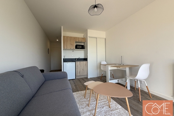 APPARTEMENT MEUBLE DE 23.60 M2 - RESIDENCE NEUVE - METRO JOLIO CURIE / CHATEAUBRIAND -QUARTIER BEAULIEU RENNES Côme vous propose un appartement meublé, composé d'une entrée, une pièce de vie lumineuse avec kitchenette équipée ainsi qu'une salle d'eau. Des espaces communs pour le confort des résidents : cafétéria, salle d'étude, laverie ainsi qu'un rooftop aménagé sur le toit du bâtiment. Idéalement situé au pied de la station de métro ligne B Joliot-Curie, Chateaubriand, il bénéficie d'un emplacement privilégié pour les étudiants et les jeunes actifs. Les lycées Joliot-Curie et Chateaubriand se trouvent à proximité immédiate et le campus universitaire de Beaulieu, avec ses nombreuses infrastructures d'enseignement et de recherche, est accessible en seulement 10 minutes à pied. Une boulangerie en face et un supermarché Super U situés à quelques minutes à pied. Le Parc des Gayeulles, à proximité immédiate, offre la possibilité de se promener, faire du sport ou se détendre. Pour plus d'informations, n'hésitez pas à contactez le cabinet Côme immobilier au 02 23 45 00 84 en précisant la référence GES-2628. Les informations sur les risques auxquels ce bien est exposé sont disponibles sur le site Géorisques : www.georisques.gouv.fr.