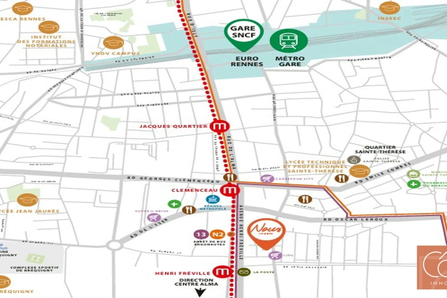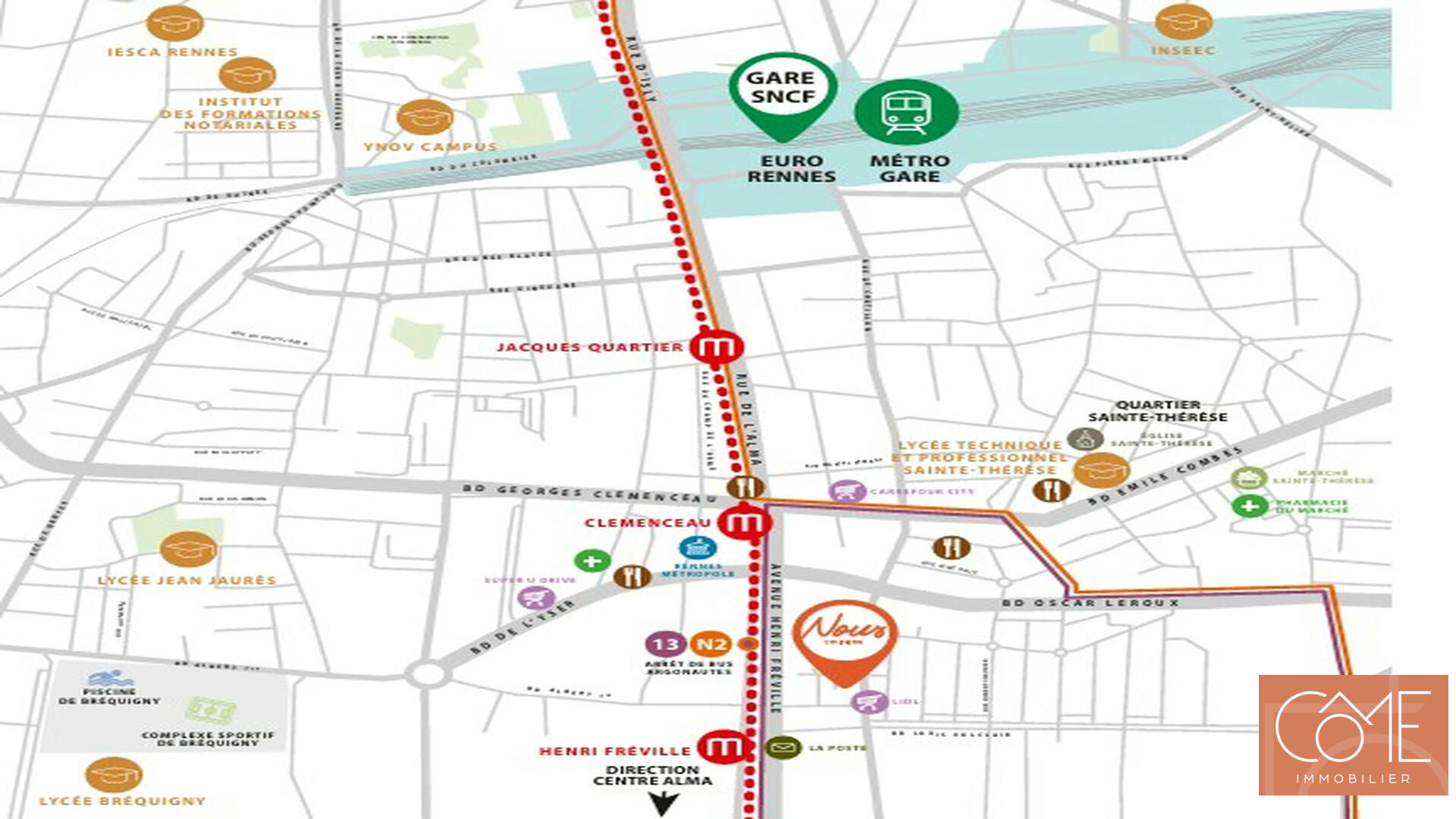 APPARTEMENT MEUBLE DE 30.41 M2 - RESIDENCE NEUVE - QUARTIER SUD GARE - RENNES Côme vous propose un appartement de type T1 Bis comprenant une pièce de vie ainsi qu'une salle d'eau avec WC, situé au sein de Nous-Coliving dans le quartier résidentiel Sud Gare. L'adresse présente de nombreux atouts recherchés avec un accès direct et rapide au centre-ville et à la rocade, une proximité immédiate des transports facilitant les déplacements, notamment vers les universités, ainsi que la présence de nombreux commerces et services à proximité. La Faculté des Sciences Économiques est accessible en environ 18 minutes, la Faculté de Droit et de Sciences Politiques en 25 minutes avec un changement à la gare, le Campus de Beaulieu en 27 minutes également avec un changement à la gare, et le Campus de Villejean en environ 16 minutes. La résidence offre également des espaces communs de qualité incluant un espace détente avec salle à manger ainsi qu'un espace de co-working intégrant une bibliothèque iconique. Pour plus d'informations, contactez le cabinet Côme immobilier au 02 23 45 00 84 en précisant la référence GES-2626. Les informations sur les risques auxquels ce bien est exposé sont disponibles sur le site Géorisques : https://www.georisques.gouv.fr .