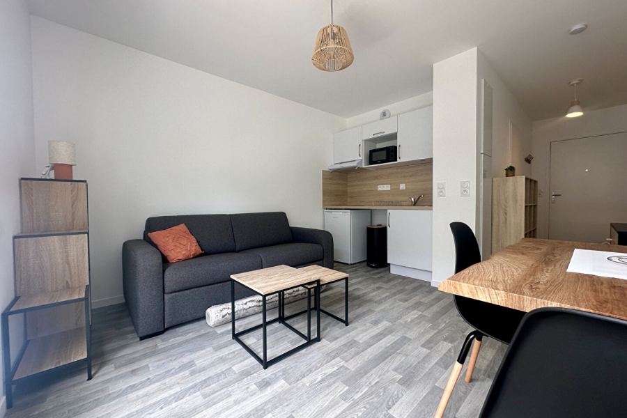 APPARTEMENT T1 NEUF DE 22.26 M² - RESIDENCE GREEN ACADEMY- MEUBLE Côme vous propose ce ravissant appartement T1 meublé situé au 1er étage d'une résidence neuve. Ce logement comprend une entrée avec placard donnant sur une une pièce de vie lumineuse avec coin cuisine aménagée et équipée. Ce bien dispose d'une salle d'eau avec WC. Résidence idéale pour étudiant: présence d'un local cafétéria, d'une laverie, d'une salle d'étude et d'un garage à vélo. Eau chaude, eau froide et chauffage inclus dans les charges. Contactez Côme dès maintenant pour organiser une visite. Cet appartement est disponible début juin. Ref : GES-1449 Les informations sur les risques auxquels ce bien est exposé sont disponibles sur le site Géorisques : "www.georisques.gouv.fr".
